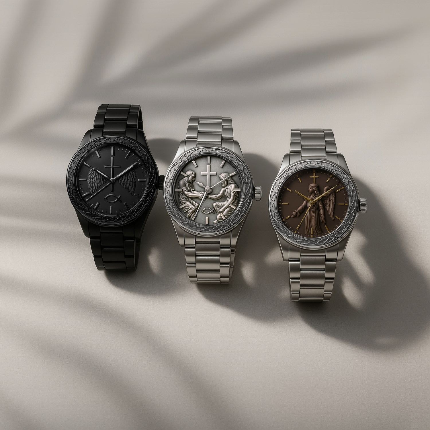 Most watches tell time. These tell your story. Whether you choose the Guardian Angel's protective embrace, the Brotherhood's symbol of unity, or the Shadow Wing's quiet strength, you're wearing more than precision timekeeping. You're carrying a daily reminder of who you are and what grounds you. For men who refuse to separate their faith from their success, who see strength in belief rather than hiding it, these timepieces transform a simple gesture—checking the time—into a moment of purpose.